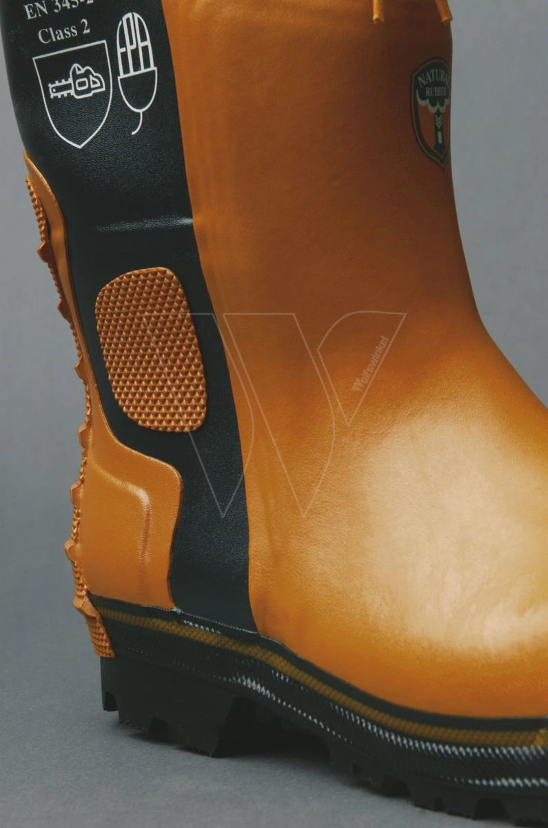 Handgemaakte laars met goedgekeurde zaagbescherming tot 24 meter per seconde. Extra versterkt bovendeel met stalen neus en versterking rond de zool. Een nieuwe hielkap maakt het makkelijker de laars aan en uit te trekken. De laars heeft een katoenen voering, daarom adviseren wij een inlegzool in deze laars.